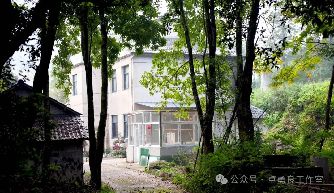 透过密密的绿色树丛,前方是一幢面向东南的两层两个半开间的农舍,简陋的100号砂浆外墙,顶上是有着搁楼的坡屋顶。
