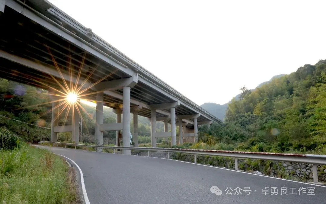 这是桐庐横村镇白云谷。头天下午五点左右,在一座山岗的弯道前,遇到拍太阳下山星芒的机会。调好光圈和感光度时,太阳不见了。